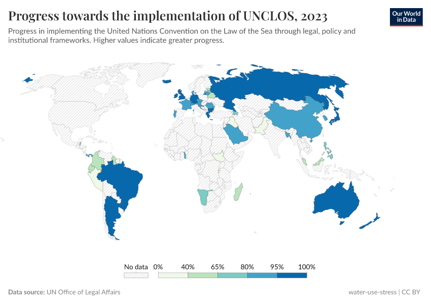 “Data Page: Progress towards the implementation of UNCLOS”. Our World in Data (2025). Data adapted from UN Office of Legal Affairs. Retrieved from https://tweak-data-page-header.owid.pages.dev/grapher/implementation-of-unclos [online resource]How to cite this data
